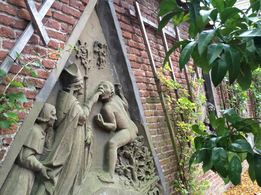 Loop richting de Dom (niet te missen). Je komt nu op de Maartensbrug over de Oudegracht. Vóór de brug aan je rechterzijde vind je de Lijnmarkt, links over de brug de Vismarkt. Wip op de Lijnmarkt even binnen bij Bond & Smolders voor de lekkerste taartjes in Utrecht. De Zadelstraat gaat over in de Servetstraat. Bij Steven Sterk vind je boeken en ramsj, waaronder veel mooie kook- en prentenboeken. Tegenover de boekhandel tref je FLFL, voor de beste vegan lunch in het centrum. En vergeet vooral niet om de boekhandel heen te lopen voor een van de mooiste hofjes van de stad: Flora’s Hof. Neem plaats op een van de witte bankjes en geniet van deze oase middenin de stad, met rozen en vaak bizarre reliëfbeelden in de muur.